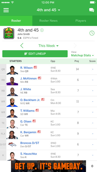 – Follow your fantasy (and favorite professional teams) with live, real-time matchup and pro game scoring.