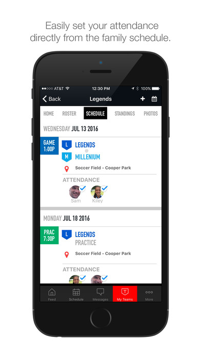 – We give you Family Schedules: track games, practices, and events across all your kids’ sports and teams in one place